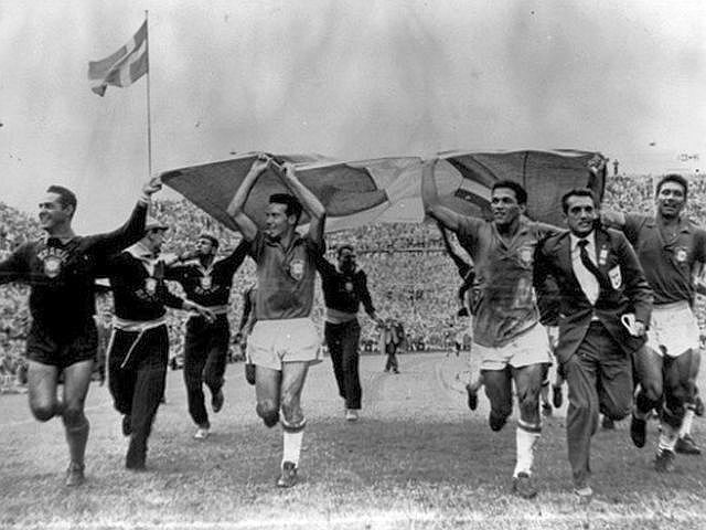 Fotografija Naslovnice: Brazilci trče pobjednički krug Prvenstva svijeta održanog 1958.g. u Švedskoj