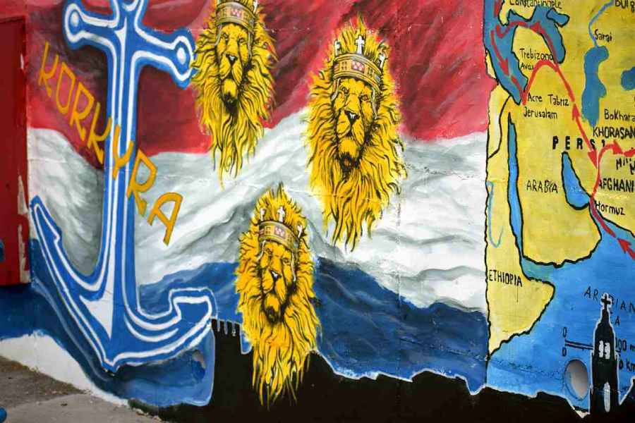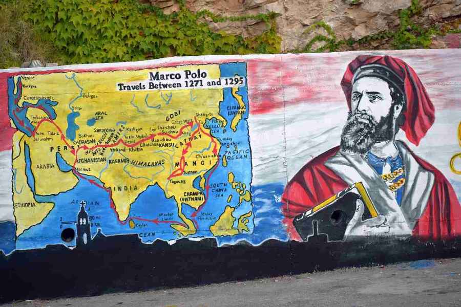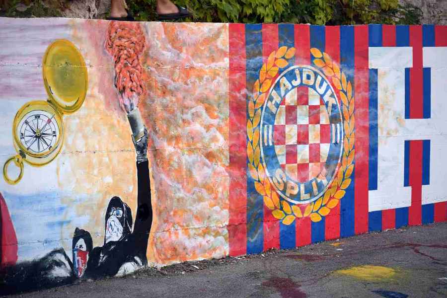 Pored tipično 'Hajdukovih' i 'Torcidnih' simbola , na novom ptrekrasnom korčulanskom muralu oslikan je i Marko Polo kao jedan od prepoznatljivih simbol grada i otoka Korčule, sa kartom i rutama koje je veliki svjetski putnik proputova na povijesnom 'Putu svile'.