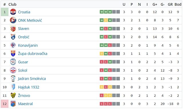 U ostalim utakmicama 'bode oči' pobjeda Slavena na Grudi od 10:0 (!) protiv Maestrala, kao i još jedna 'šestica' kojom su nogometaši Croatie u Gabrilima ispratili kući u Dubravku Sokola. Gusar je pak pobijedio Župu dubrovačku ,a ONK Metković porazio do ovog kola vodećeg Konavljanina.