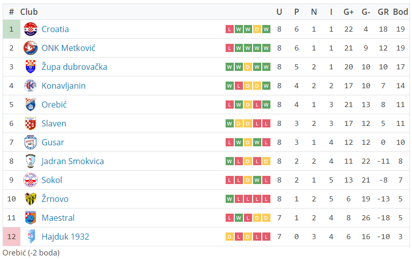U ostalim utakmicama vodeća Croatia je bila uvjerljiva na Grudi protiv Slavena , ONK Metković je u susjedskom derbiju bio bolji od Gusara, dok je u Ćilipima Konavljanin minimalnom pobjedom slavio protiv Sokola .