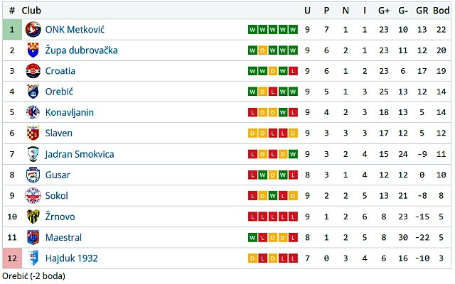U Orebiću uvjerljiva pobjeda momčadi sa Trstenice protiv Maestrala kojom su napravili skok na ljestvici i sada drže 4.mjesto. U 34.minuta Orebić je poveo iz kaznenog udarca iz kojeg je uspješan bio Ivan Kordić., dok je neposredno prije odmora vodstvo Orebića povećao brat mu Ante Kordić. U završnici utakmice Ivan Kordić svojim drugim golom u 83. i Hrvoje Rikalo u 87. postavili su konačnih 4:0. Sa današnja dva gola najbolji strijelac lige Ivan Kordić sa 13 postignutih golova odmakao je prvoj pratnji u kojoj su Brečić (ONK Metković), Vasilj (Župa dbk) i Grbešić (Croatia) za čak 7 golova!