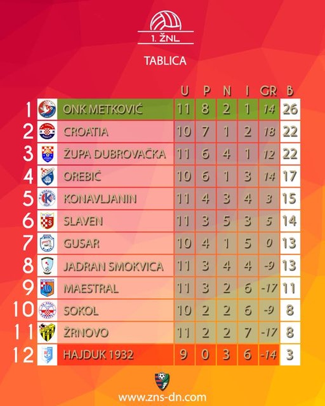 Tablica nakon nekompletnog 11.kola (Ilustracija ŽNS) :