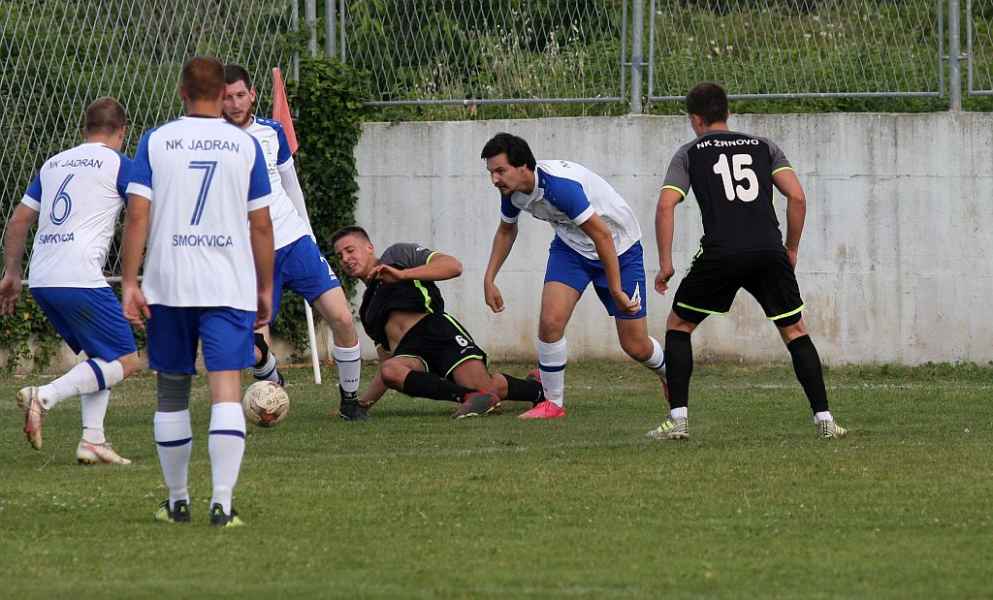 Odlična nogometna predstva jučer na Ruskovićima dvaju klubova sa otoka Korčule između Žrnova i Jadrana koje se ne bi posramile ni lige višeg ranga...