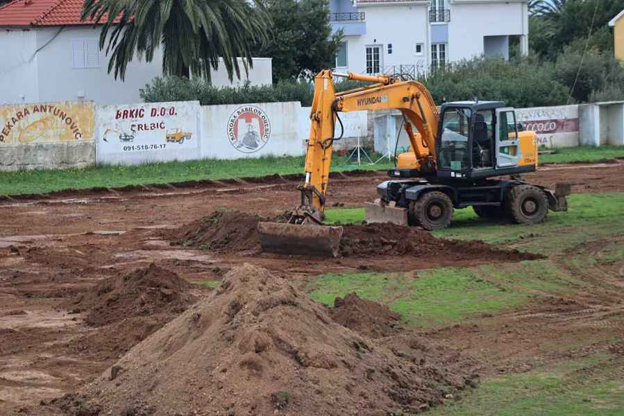 Doduše ne od treninga i navijanja jer Orebić svoje utakmice kao što znamo privremeno igra na Haštriću u Potomju, već od građevinske mehanizacije koja je privremeno uselila u dom Nogometnog kluba ' Orebić'.