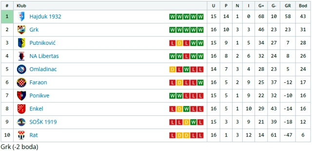 Hajduk 1932 i dalje nastavlja 'solo' nastup u ligi, u ovom kolu pobijedili su na Moćnom lazu Rata. Putniković je pak u utakmici sa pet postignutih golova pobijedio Ponikve,a Omladinac ipak neočekivano poražen u Kuparima kod NA LIbertas. Nakon više nedjelja 'posta' Faraon je danas konačno osjetio slast pobjede i to na gostovanju kod SOŠK-a u utakmici sa sedam postignutih golova, dok je najuvjerljiviji u ovom kolu ostvario Grk u domaćoj pobjedi protiv Enkela.