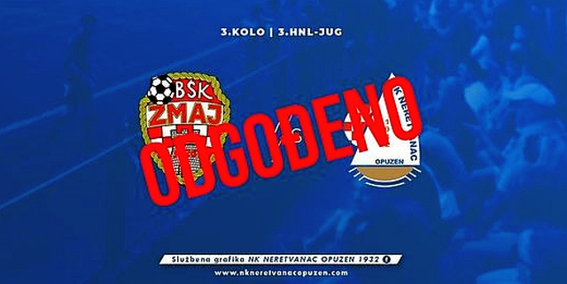 OPUZEN – Zbog pojave korana virusa kod nekih igrača Neretvanca, odgođena je utakmica 3.kola 3.HNL-jug Neretvanac – BŠK Zmaj koja se u nedjelju 13.rujna trebala odigrati na igralištu Podvornica u Opuzenu.